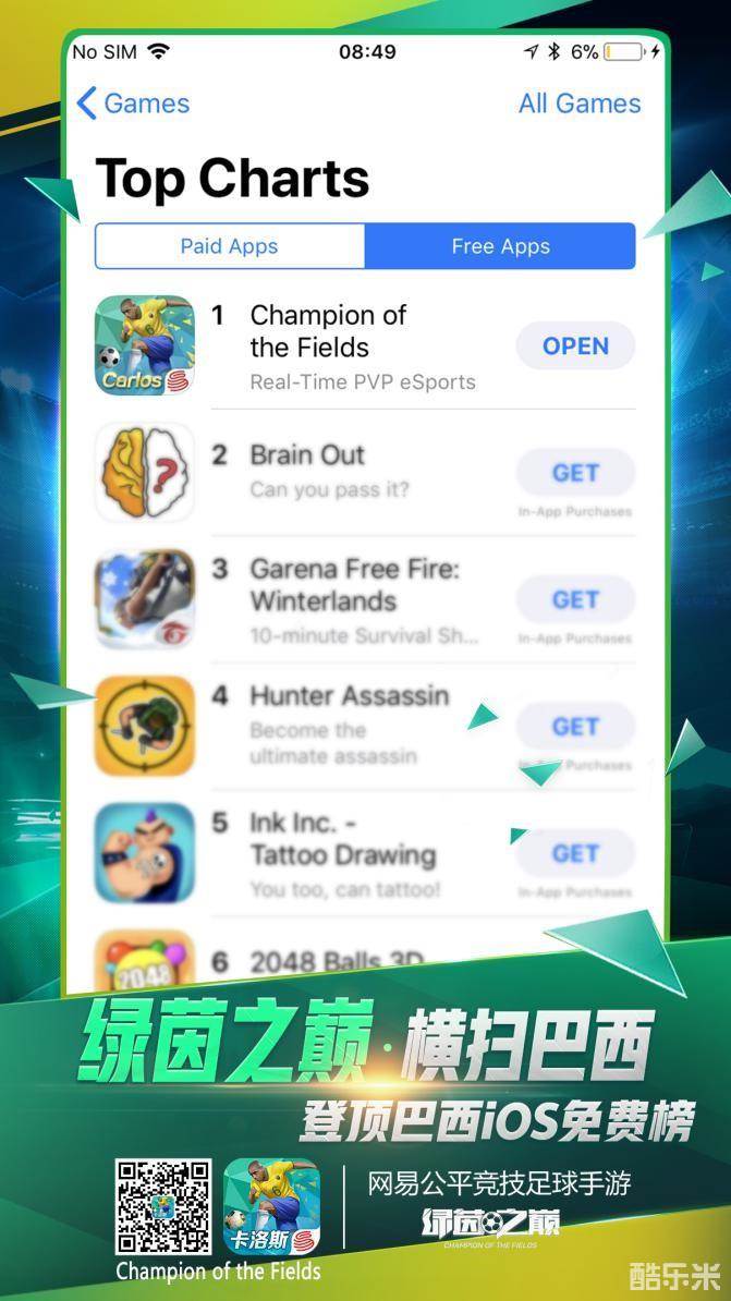 12月10日《绿茵之巅》正式登陆南美市场, 72小时内登顶AppStore巴西南美区免费游戏榜榜首。过硬的产品品质加上卡洛斯代言,瞬间征服巴西玩家。游戏定制玩法巴西巡回赛备受玩家好评。12月20日国服即将开测,传奇球星卡洛斯代言,预约公测有机会获得卡洛斯正版签名球衣。
