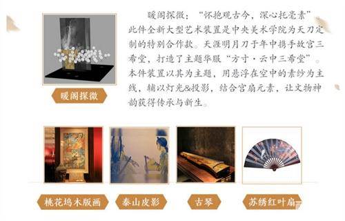 多件天刀非遗周边现身艺术共创馆,近距离感受匠心手作魅力。更携手中央美术学院,三希堂主题艺术装置作品《暖阁探微》等你欣赏!