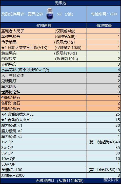 本次活动重点在无限池,商店方面,可以随便打打前面的主线本,刷刷free,搬搬自己急缺的材料就好啦~