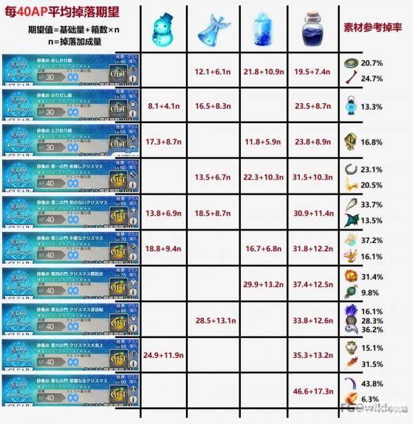 作为FGO历年的收尾活动,无限池的圣诞活动拥有全年最丰厚的奖励这点毋庸置疑,若是说这个活动有什么缺点的话,大概就是一来距离上一个无限池尼禄祭不太遥远,玩家的技能石素材和狗粮需求缺口大多都已被一定填满;二来高效掉落本要随着时间和主线推进才能开放,对真正有需求的玩家来说时间太紧,效率不高。除此之外本次圣诞活动还有一个缺点就是商店礼装不含np,速刷难度相对去年和明年都较大,比较考验弓阶box。玩家们苦等一年多才得以落地的艾蕾酱强度又不是那~么的令人满意。枪凛的抽取建议在从者测评中已经写清,再次不多赘述。FGOWiki全体成员在此祝福各位玩家在今年(农历意味)这最后的活动中都能十连满宝艾蕾酱,把把副本掉礼装。我们赝作见。