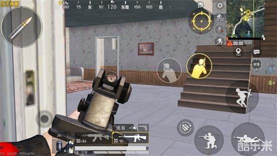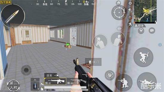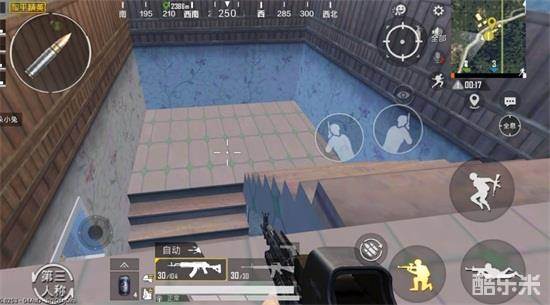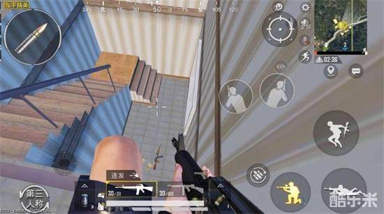 3.进入二楼里面的房间可以用第三人称的视角卡到二楼楼梯口的视野,在对方冲进房间里时就可以直接输出。里面的房间和门口有一定的距离所以推荐使用开镜闪身枪,既能保证输出也可以保证安全。