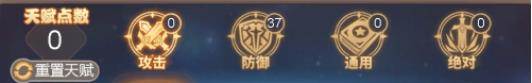 天赋分为三大类:攻击、防御、通用(绝对类天赋暂未开放)。