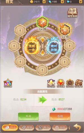 符文获取渠道通过符文塔开箱子,或者是符文夺宝。这里推荐把符文塔打到高层解锁更多的符文,去符文夺宝抽。拿出橙色符文。符文战力加的非常多,符文夺宝十次必定保底橙色,是非常稳定的。抽的符文量很多的玩家,可以考虑符文合成。将两个属性合进一个符文里。这样可以多放一个别的符文。