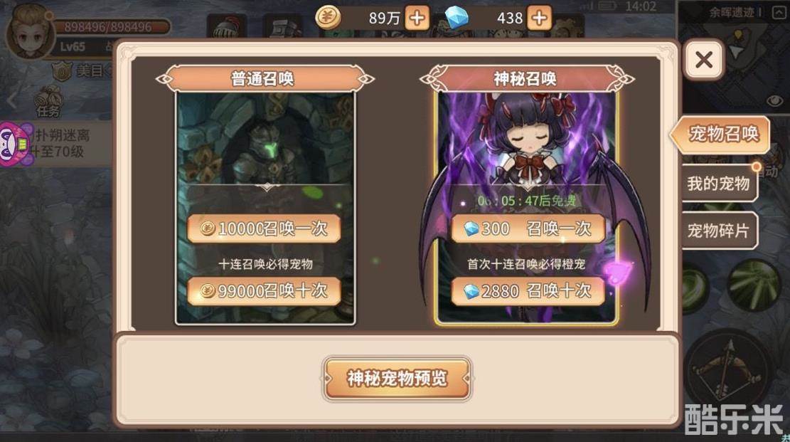 游戏第二资源,金币。除了,升级、技能、提升战力外,还有一个比较重要的用处。普通10连,运气好的话,4-6个宠物宝石,2-3个紫色宠物。