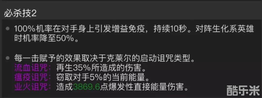 另外提一下,如果寡姐开了自残,开局自身免流血会将自身的流血纯化掉转而获得一个蓄力和4%能量,然后轻击4连结尾切状态把毒纯化掉又可以获得一个蓄力和能量。