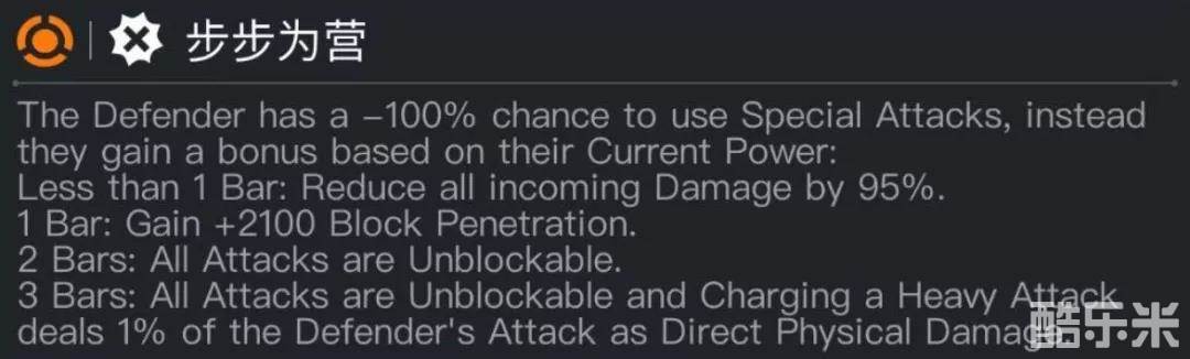 三格能量时,所有攻击都不可阻挡,进行重击会造成防御者直接物理伤害的1%