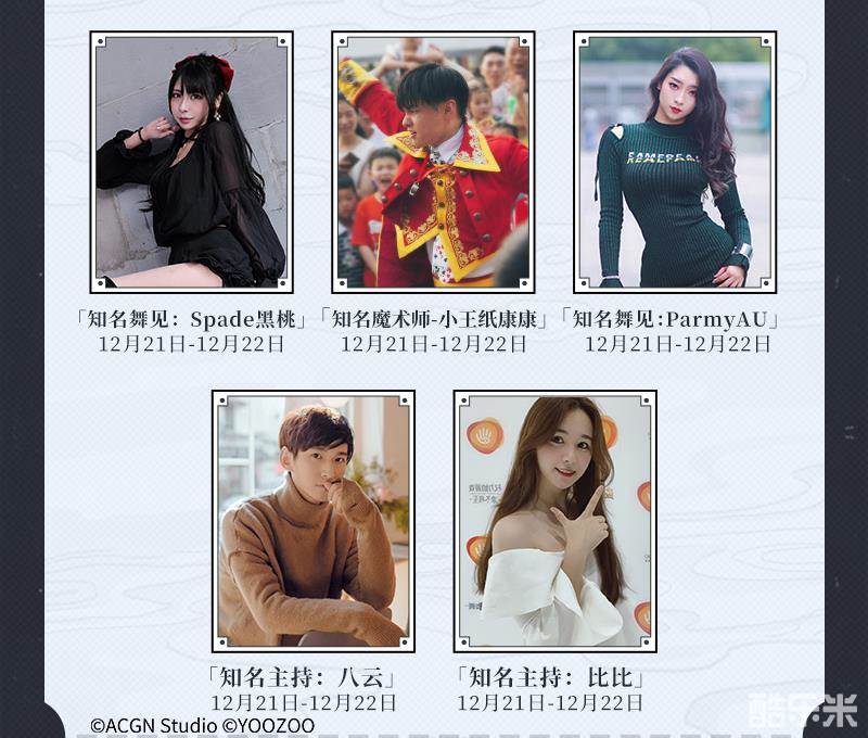 除了上述的重磅嘉宾外,包括知名舞见Spade黑桃、ParmyAU,知名魔术师小王纸康康以及知名舞团阴阳寮在内的众多人气嘉宾也将汇集展台,带来精彩的表演以及有趣的互动,更多惊喜等你现场发掘~