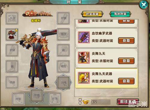 炎舞九天的风格则完全和血饮幽罗相反。全身金红色搭配黑色,就像是传说中浴火重生的凤凰一般,感觉靠近就要被火焰吞噬融化。穿上后,化身火焰之主降临人间,焚尽万物!