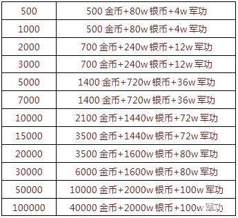 【活动内容】活动期间,游戏内累计充值达到对应金币,即可获得对应奖励;所有商品绝对超值,不信你自己看。相中哪个千万别手软!因为一犹豫也许就不知道何时能再见了。