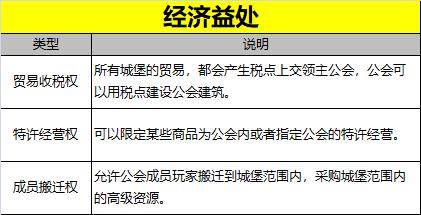 公会可以占领城堡。经济手段,当对城堡的累计贡献超过一定数额且排名第一,可以获得城堡的统治权。军事手段,击败城堡的领主(npc或其他公会),可以获得城堡的统治权