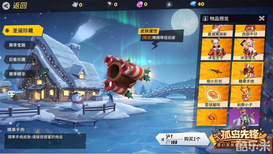 主人们拥有美丽的节日新装,专属武器当然也需要随之变身。穿云猎隼专属武器皮肤“糖果手炮”将为他的对手送出糖衣下的危险冲击;而冰雪女王的专属武器皮肤“雪球魔阵”则让冰雪魔法的美丽更为出众。