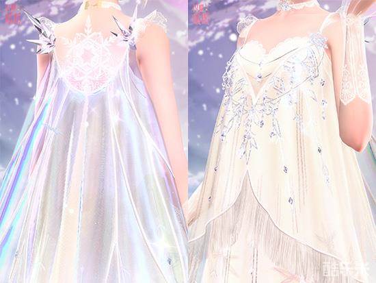 墨丘利以雪精灵为灵感,用晶莹剔透的材质设计出轻盈的“轻雪遥歌”,简单大方的设计让这套服装更为清新飘逸。
