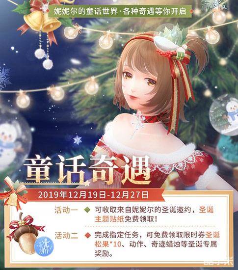 此次游戏更新后,开启圣诞限时福利任务,即日起至12月27日止,玩家可收取来自妮妮尔的圣诞邀约,免费领取圣诞主题贴纸;完成指定任务后即可拥有10张“星雪圣诞”限时感应券“圣诞松果”、动作、奇迹蜡烛等圣诞专属丰厚奖励。