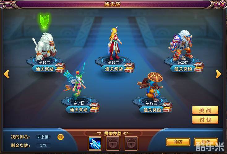 50级以上的玩家可前往天熙城(206,258)神秘老者处挑战通天塔,可获得通天币、舒筋丸、经脉丹等道具以及其他物品奖励!通天塔共有60层,分为挑战和讨伐两种,挑战及讨伐共用次数,合计每天最多3次。挑战需要战斗,可获得丰厚奖励;讨伐不需战斗,可获得普通奖励。