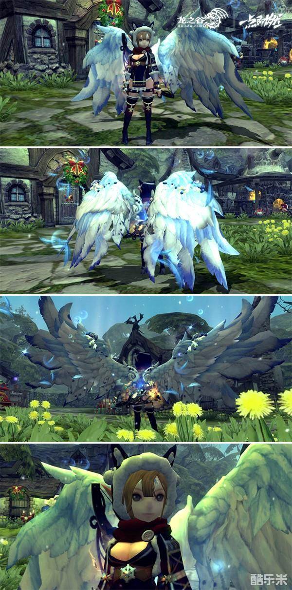 图4 水色云影三件套!巨翼如梦幻般浪漫 《龙之谷》里的主城都已经充满了圣诞的气息,飘飘洒洒的雪花、温馨的黄色暖灯、可爱的麋鹿装扮、遍地的礼物盒,一切仿佛都染上了圣诞的样子,静谧而美好。与新版本同步上线的水色云影三件套,更是为今年圣诞又增添了如梦幻般的一笔。轻柔的蓝色羽毛随着翅膀扇动而若隐若现,通透的海洋气泡似乎让人想要沉溺在梦境里。希望在圣诞节里,你也能感受到温暖,感受到无尽的柔软与美好。