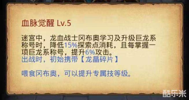 龙血战士能够将龙力量使用到极致。学习或升级巨龙称号时,除了能够降低探索点的消耗以外,还能根据称号的数量,进一步叠加攻击力!