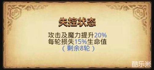 虽说失控状态下每轮都会损失生命值,但是相对应地提高攻击和魔力却非常实用。魔力值高了之后,每轮损失的15%的生命值,也许还没有暗影新星一口回血来的多。
