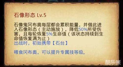 技能石像形态续航能力MAX,每下一层回复20的能量值,消耗能量就可以变成打不死的小强。只要对手无法一次性秒掉石像鬼,再搭配专属饰品,它就是无敌的存在。