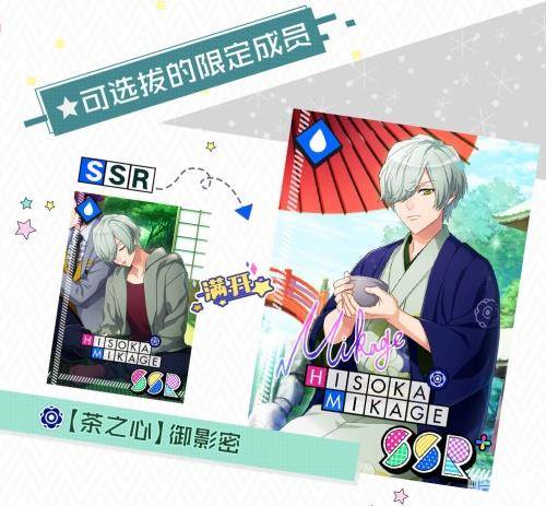 本次可选拔的限定成员为SSR卡【茶之心】御影密、SR卡【舞之心】琉璃川幸、R卡【书法之心】希特隆哦~开花后还能看到成员们超可爱的另一面!