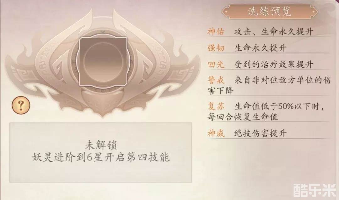 前期可以用警戒来过渡,敌方AOE妖灵或者狙击妖灵对自己造成的伤害下降;复苏的话个人觉得实用性不高,因为在墨麒麟成长后,那些恢复的血量不值一提。