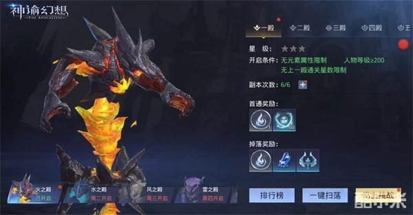 关卡分为首通奖励和掉落奖励,越后的殿层需要的进入的条件和门槛越高,但是掉落的奖励也是越来越丰厚!