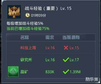 战斗经验,系统都告诉你重要了,还不重要????这个研究中心到了17级后随着科技上限一起点,能点多少点多少。