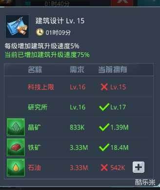 2.研究所前期直到17级就好,等到科技上限超过17级,再随着科技上限的等级区升级研究所,研究所17级之前和指挥中心一样一刻不能停,科技上限前期有能力的,尽量点65金币,后期的话问题不大,因为日常给的够多