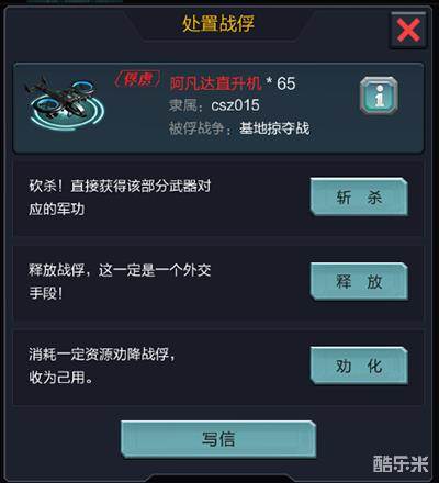 3.劝化可以消耗资源将战俘收为己用,需要战俘营等级达到40级,可劝化武器级别受兵工厂等级限制