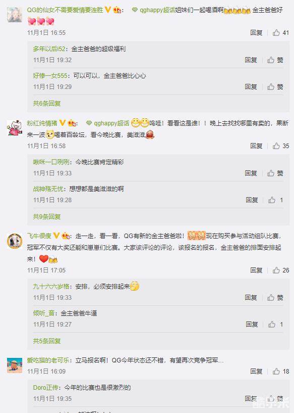 来到QG战队官方微博此前的活动预告下,通过翻看粉丝们在评论区的留言,不难体会到他们对本次赛事的极大热情:还有很多粉丝亲临现场。
