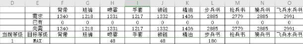 这个计算器只统计彩书和彩材料,首先先上当前2.0版本兵营肝满所需的材料数: