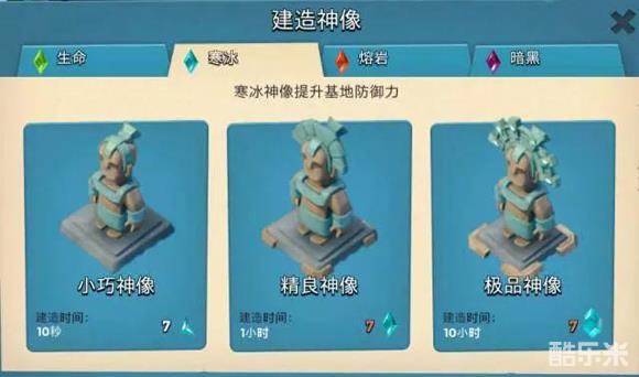 不管你是主防御还是主进攻,基地上应该都会留有寒冰神像的位置。相较于建筑伤害和建筑血量,比较推荐建筑血量,毕竟拥有更多的血量,才能顶住更多的攻击。
