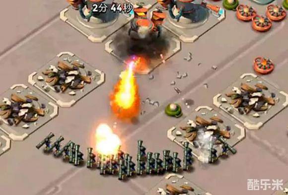 上兵攻击之前,用火炮清障碍是至关重要的。要知道,火炮的使用也是有大学问。相邻建筑物用火炮攻击,建筑物是会同时受到伤害,而且伤害不会均分!如果你搜到某个玩家的基地,每个建筑都是单独排列,可能你遇到了一个聪明的总司令!
