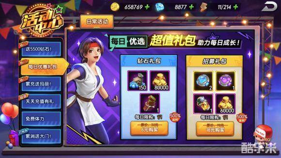 1、微氪:那么接下来如何微氪就是一个很有技术性的事情了。怎么定义的微氪?个人定义的微氪是只拿“跟随天天充值送,每日6米超值礼包”这个活动的,比如开服的草雉京天天充值送,5天乘以6米=30米就能拿到72个草雉碎片+草雉觉醒武器,就游戏论游戏,血赚!性价比高到炸裂!!一个月的花费在100米上下(有些天天充值送活动并不是你的目标,可以不用理会)。