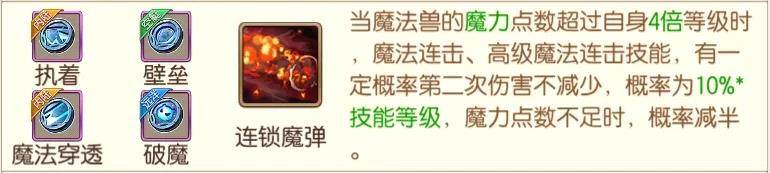 ●理由:五魔能够保证输出,同时能让自带一技能寒冰护甲产生效果,高级强壮,复生,壁垒,魔盾等能增加魔法兽的生存能力。二三阶魔导士可根据自身需求去进行打书。可以选择一些带魔法攻击的高书,也可以继续增加生存。
