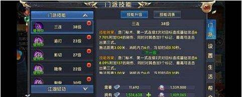 玩家在技能页面升级自身门派技能的同时千万别忘了最下方的帮会修炼也要升级哦。帮会修炼主要分为基础类、提升类、强化类和抗性类四大类。每一类带给玩家的属性提升十分显著。所以玩家在游戏中一定要加入帮会,除了日常活动能领奖励外,对于属性的提升也是必不可少的。