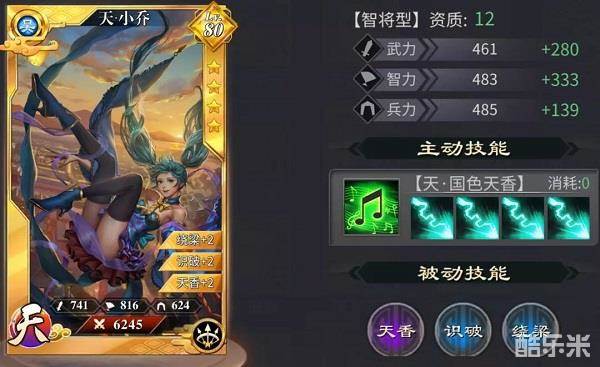 0气:小乔的技能,最引人的地方,毫无疑问在于消耗士气0。消耗士气0的目前只有两个,而作为其一的,就是小乔。士气的宝贵不言而喻,不需要士气便能释放主动技能,让其备受青睐。