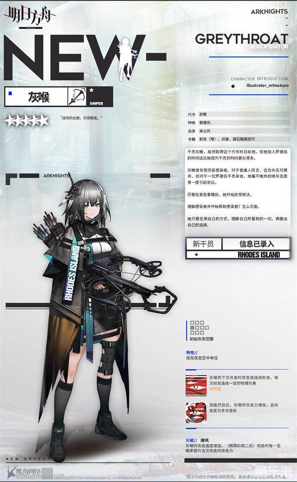 明日方舟全新的干员灰喉又是一个新的狙击,灰喉精2立绘是什么呢?灰喉精2技能怎么样呢?下面小编为大家带来明日方舟灰喉强度技能解析,一起看看吧.