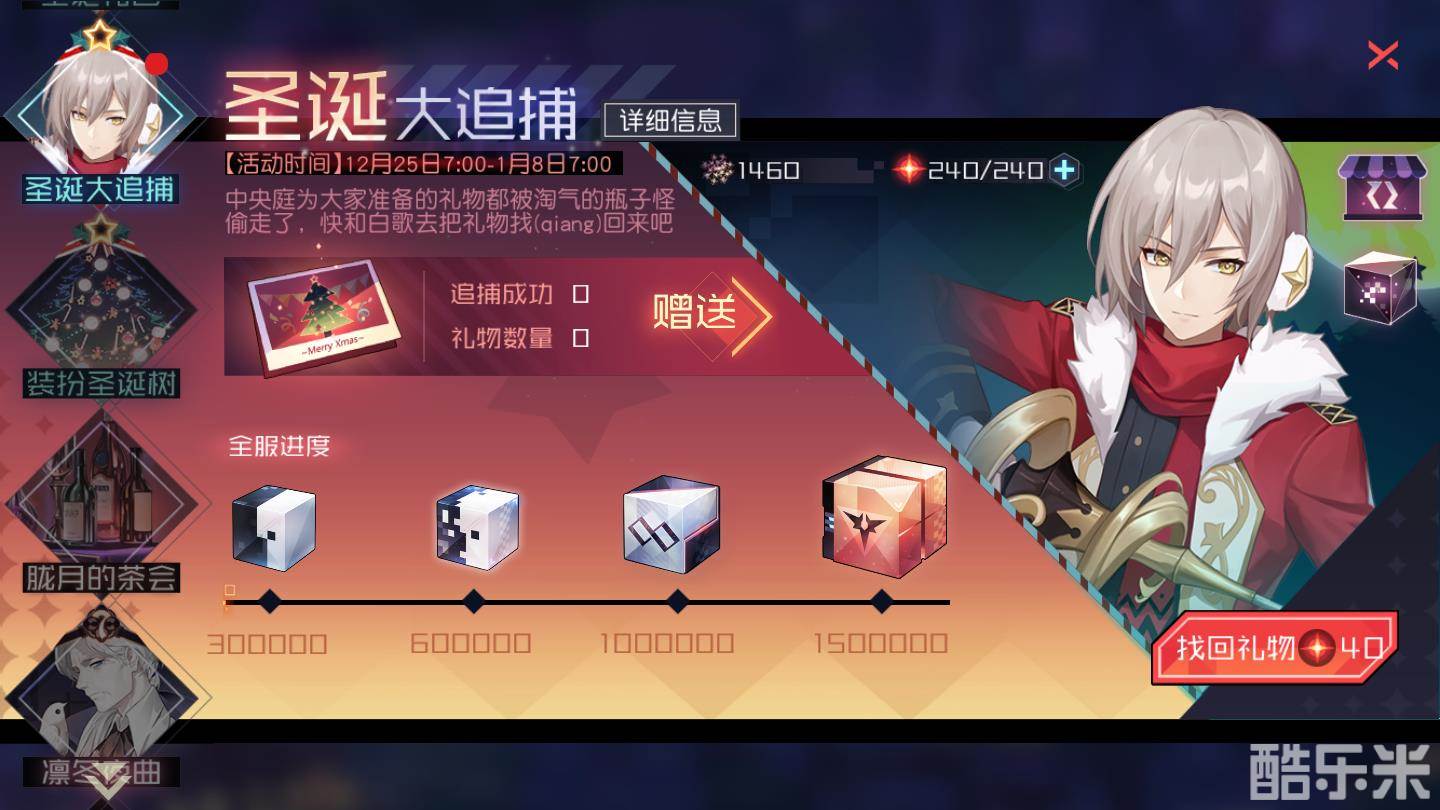 追捕胜利将获得礼物,可触发神器使赠礼剧情。成功追捕怪物、为神器使赠礼均可获得雪绒花,雪绒花可在活动商店中兑换白歌圣诞限定时装“平安夜骑士”、尤梨复刻时装“平安夜信使”、圣诞挂饰等内容。每位指挥使累计追捕成功30次后,可获得2019年圣诞CG“雪夜与圣歌”。