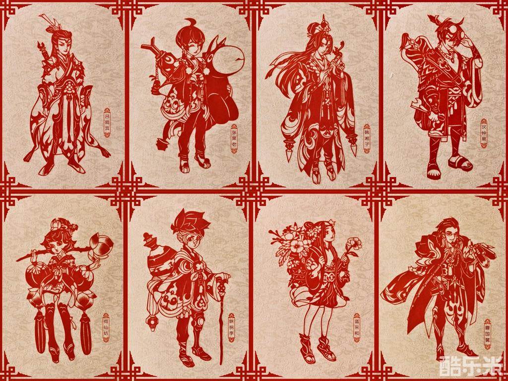 《自由幻想》手游以八仙传说为剧情主线,将非遗传说数字化还原在游戏中,玩家可以在游戏内感受八仙传说的人物和故事魅力。本套剪纸图案来源于《自由幻想》手游中的八仙形象,耳熟能详的八仙张果老、何仙姑、吕洞宾等八仙人物被全新的演绎。