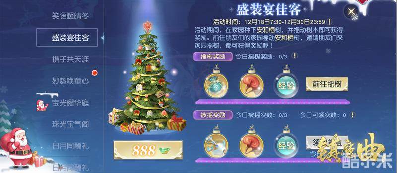 抢椅子热闹非凡,天命者们也别忘了种下属于自己的圣诞树、增添更多节日气氛!回到家园,把安和栖树种好,就能邀请好友来“摇钱”,或是前往好友院中摇走好运!无论摇钱还是被摇,天命者们都能收获丰厚的奖励:海量经验、万年灵芝等均在其中,动动手就能摇出来!