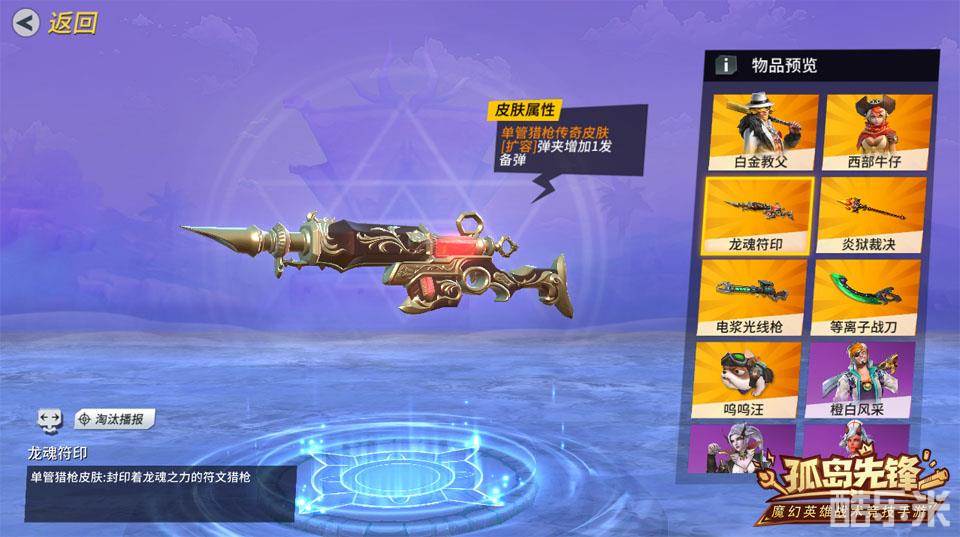 在《孤岛先锋》中,创意百变造型独特的枪械皮肤深受各位英雄喜爱,此次的全新枪械礼包专为单管猎枪打造,机械雕刻与符印元素共同构建出奇异美感,为这款经典火器附上神秘力量。玩家购买枪械礼包将有机会获得单管猎枪传奇皮肤“龙魂符印”,使用时还会出现定制淘汰播报。