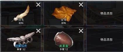 需要两羽毛,一个做武器一个做面具,皮革合成皮革盾,或者建议打野怪拿羽毛和皮革