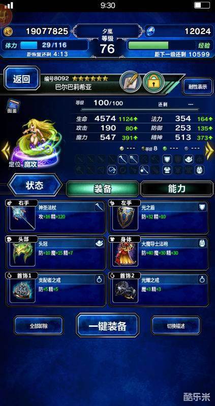 奶妈:风女,装备堆高精神即可,我堆到500精(神圣法杖加插件比较容易达成),全程无需担心血蓝(因为需要达成不使用魔法成就,所以不推荐使用彩花及嘉妮特,生命和声需要56蓝,一般蓝回复量无法满足续航要求,奉献99蓝,更加有所欠缺,除非能快速的终结BOSS)