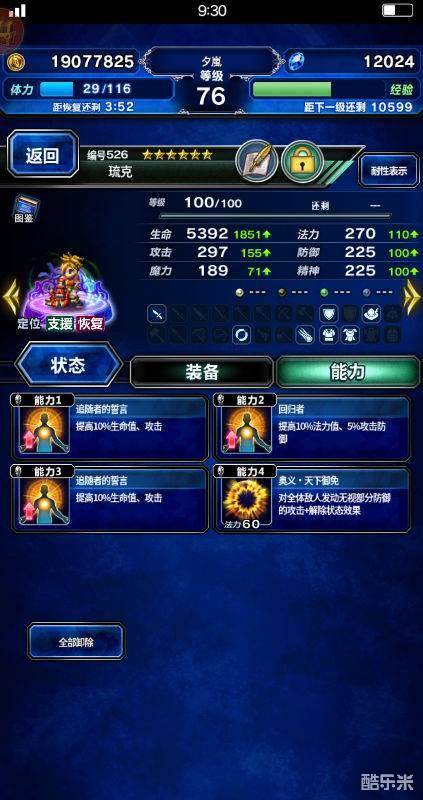 下面打BOSS本体就要注意控制血量,可以先将右手血量打到50以下,硫克打本体攒满极限技,尽量在尾数回合为0,5的回合将本体血量打下70%(一般可以打到60%以下),下一回合,使用硫克极限技,樱继续将其血量打低(血量可以打到40左右),复活起来以后我们有4-5回合时间,光战群坦后降低BOSS精神,樱BUFF魔攻降雷防叠两回合终焉轰雷,第三四回合使用极限技加拉姆加风女极限技加蕾姆极限技一举秒杀本体和右手(本体血量在30%以下可以秒杀) 打的快的在40回合即可结束,我打了有3把成功的为76回合,46回合,以及38回合,没成功的是中间自己没看好回合数,boss连出两次灭团以及用硫克水属技能打了本体后出发超电磁爆破反击团灭等 角色属性: |