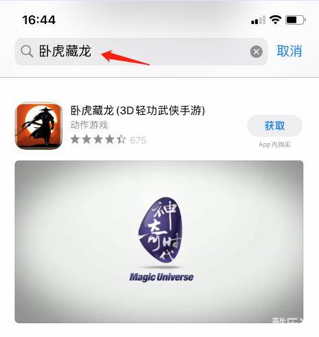第二:在苹果手机中的appstore中搜索卧虎藏龙