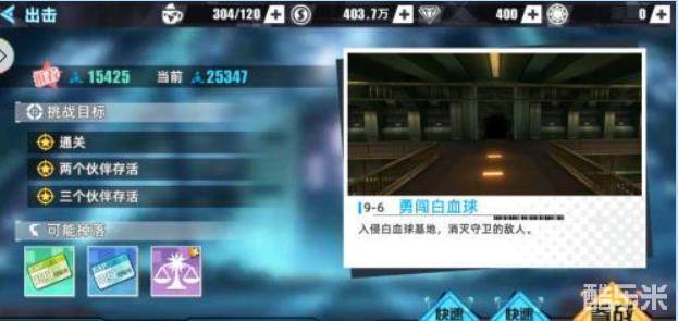 失落王冠手游主线副本9-6的主要任务时入侵白血球基地,消灭守卫的敌人,通关后可能掉落初级经验卡、中级经验卡以及平衡基因γ碎片,固定奖励为主角经验以及金币。