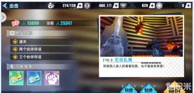 失落王冠手游主线副本10-3无双的主要任务是消灭一波波的敌人,最后击杀boss,即使陷入敌人的重重包围,也要持续战斗。通关后可能掉落初级经验卡、中级经验卡以及狂热基因γ碎片,固定奖励为主角经验以及金币。