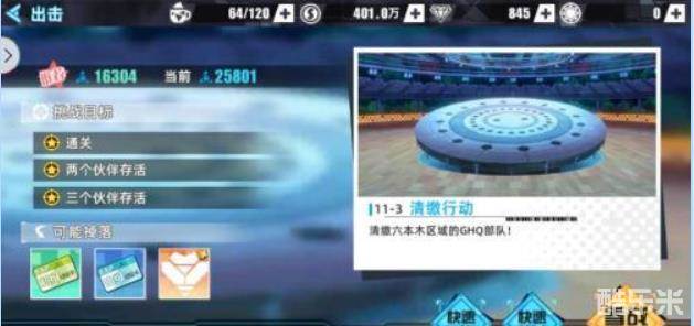 失落王冠手游主线副本11-3清缴行动的主要任务是清缴六本木区域的GHQ部队。通关后可能掉落初级经验卡、中级经验卡以及勇气基因δ碎片,固定奖励为主角经验以及金币。
