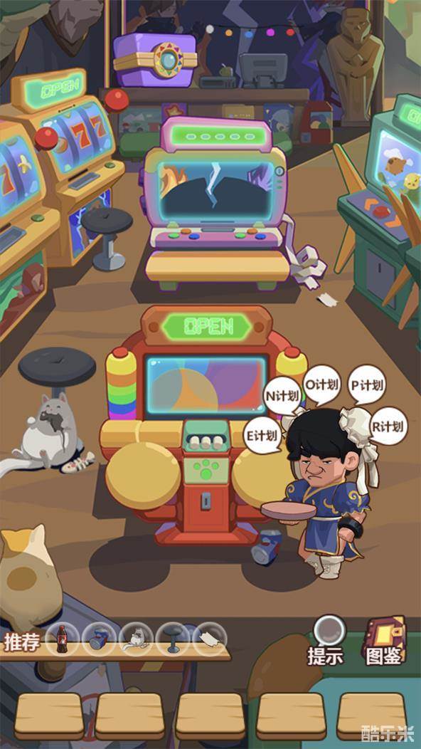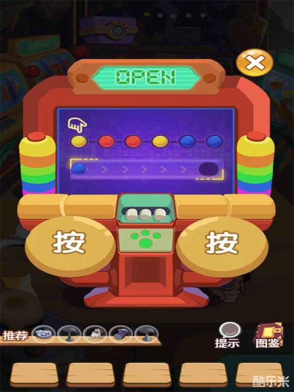 点击正中间游戏机游戏,输入正确的密码“猫头鹰,熊猫,大象,鸟”,每个动物的英文首字母对应“O.P.E.N”打开的意思,就是3412的顺序。然后就是根据三角形的要求,去看屏幕正上方彩灯的颜色,最后回头来游戏机调整彩灯的颜色,达到要求就出道具了。