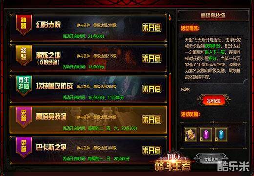 王者斗场是塔人《奇迹重生:格斗王者》最重要的一个跨服PK活动。每个月仅开启一次,所以每一个玩家都极为珍稀每一次的挑战机会。因为参与王者斗场的挑战,不但能够收获海量福利,更有机会一战成名,战胜无数各大服务器的顶尖高手,成为众人仰望的最强王者。当你头顶着“天下第一”称号出现在各大活动中的时候,任何人远远见到都只能退避三舍,丝毫不敢试其锋芒!